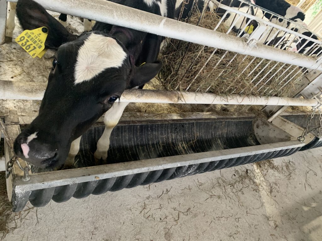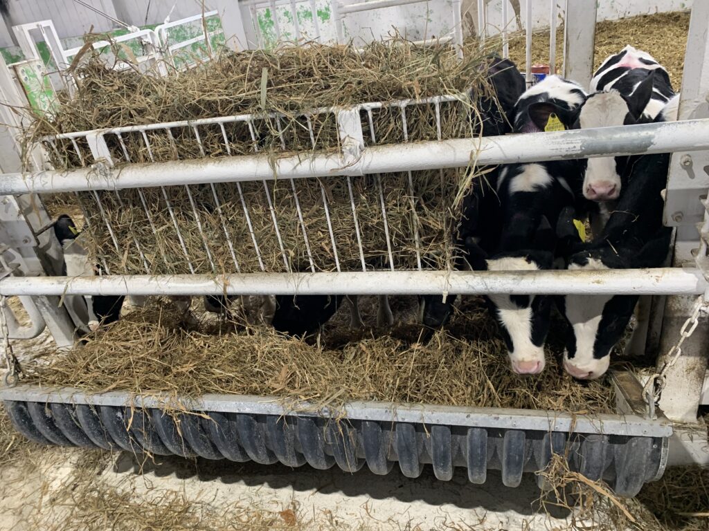 ちなみに乾草を先に与える理由は、粗飼料を先に口にすることでルーメン内が安定し、そのあとの配合飼料も食べ進めやすくなるからです。乾草は給餌の時間だけではなく、子牛がいつでも口にできるように常時置いています。